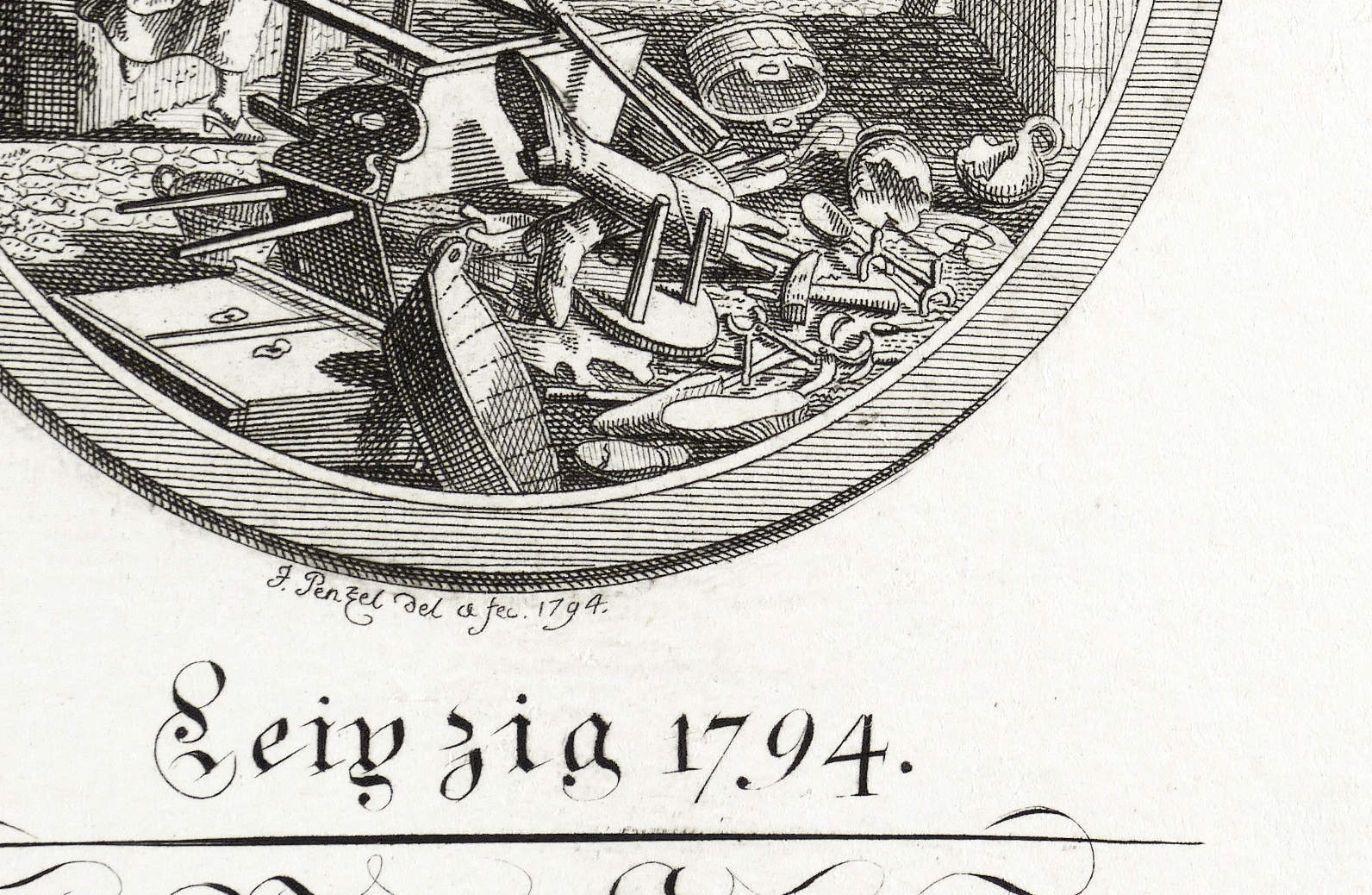 1794. Kupferstich / Linienstich, in Schwarz, auf kräftigem weißem Velin. – Historische Buchillustration, von Johann Georg Penzel. – 15,8 x 19,1 cm (Darstellung / Platte), 19 x 25 cm (Blatt).