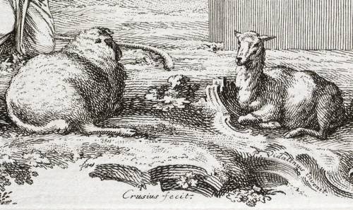 1757. Radierung / Strichätzung, in Schwarz, auf Büttenpapier. – Originale Künstlergrafik, von Gottlieb Leberecht Crusius. – 14,2 x 17,0 cm (Darstellung / Platte), 14,5 x 17,3 cm (Blatt).
