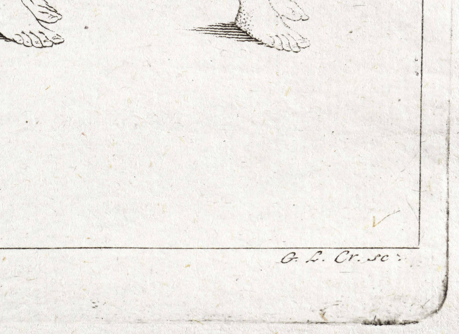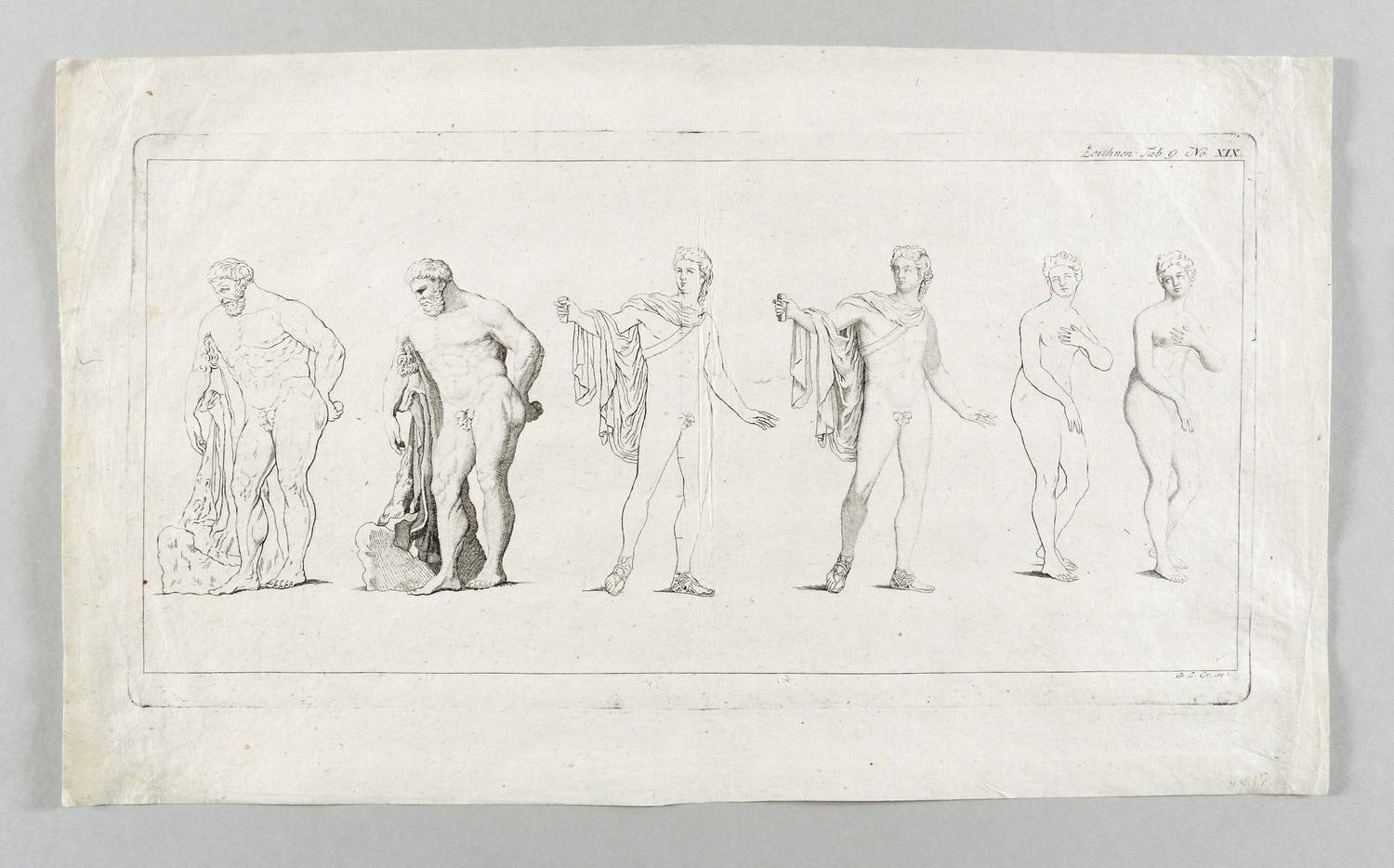 In der Platte rechts unten signiert und datiert: ″G.L. Cr. sc:″. Rechts oben bezeichnet: ″Zeichnen Tab. 9. No. XIX.″ – Heftspuren im unteren Rand. Mittig augelegene ältere Faltung. Vor allem in den Rändern etwas knickspurig. Insgesamt mäßig guter Zustand.