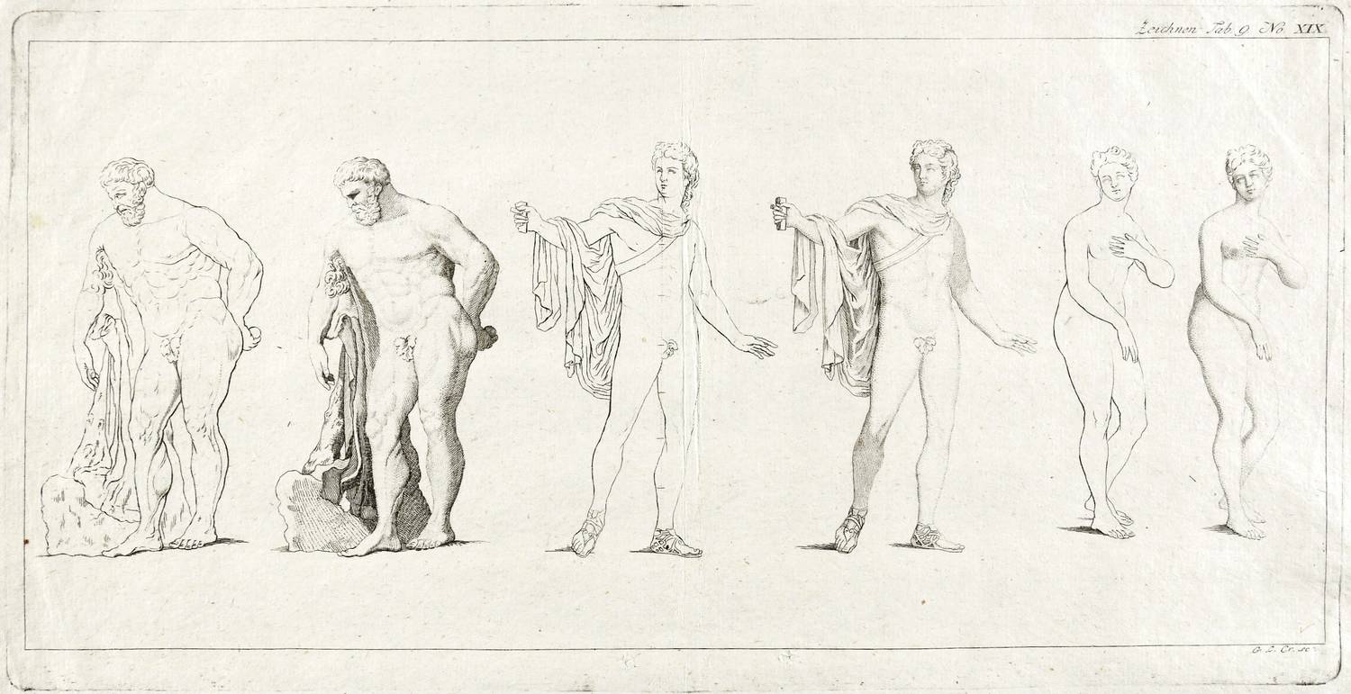 Crusius, Gottlieb Leberecht. – Zeichenschule. - Umriss und Schattierung. – „Herkules Farnese, Apoll vom Belvedere & Venus Medici”.