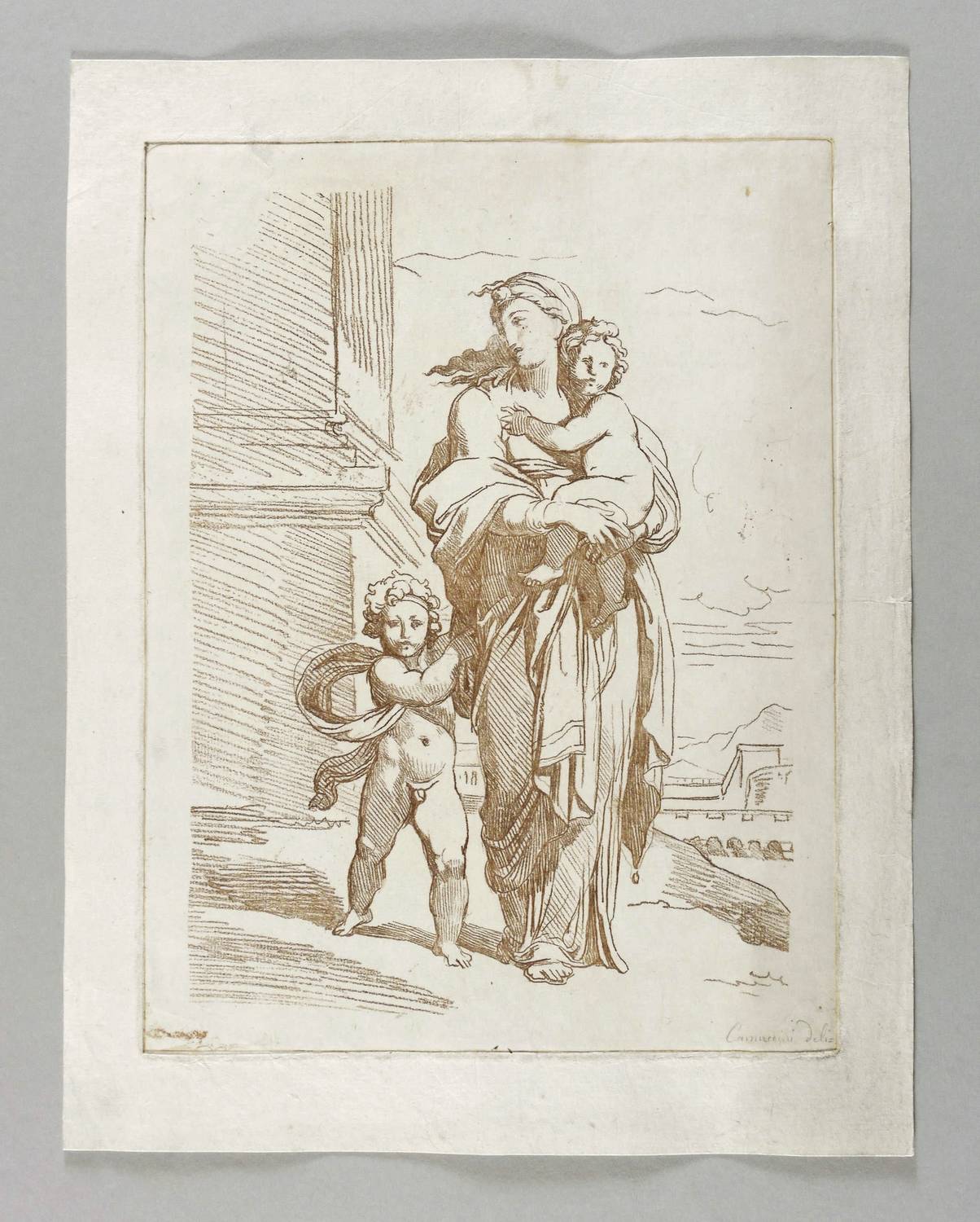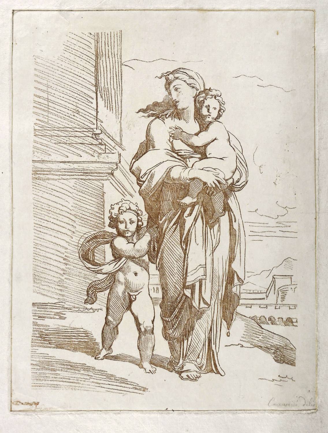 In der Platte rechts unten in Bleistift bezeichnet: ″Camuccini del.″ – Alte horizontale Knickfalte geglättet. Im Rand leicht angeschmutzt. Insgesamt mäßig guter Erhaltungszustand.
