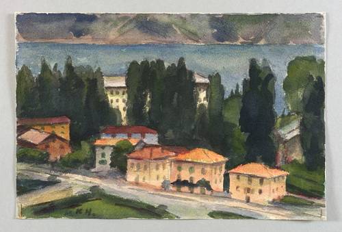 Links unten in Pinsel und Aquarellfarben signiert und datiert: ″35. K.H.″ Verso in Bleistift weiter bezeichnet und nochmals signiert: ″Torbole, August 1935. KHensel.″ – Rückseitig in den Ecken Reste einer ehemaligen Montierung. Insgesamt gut erhalten.