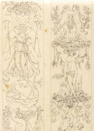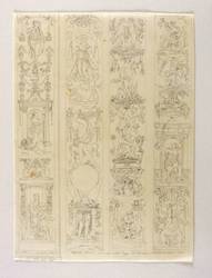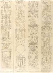Rechts unten in Bleistift bezeichnet: ″Raffaele S Urbino inv: e dip: nelle Logge del Vaticano. / Carlo Lasinio R. Prof. incise″. – Detailreiche Umrisszeichnungen nach Pilaster-Fresken von Raffael in den Loggien des Vatikan. Abgenommen nach den Kupferstichen des Prachtwerks von Carlo Lasinio ″Logge del Vaticano″ (Florenz: Niccolo Pagni 1802). – Sehr guter Zustand.