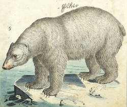 Aus: Naturgeschichte der Säugethiere in Bildern. treu theils nach d. Natur, theils nach d. ausgezeichn. zoolog. Bildersammlungen gez., fein u. getreu color. zum Anschauungsunterricht für d. Jugend [...] (Eßlingen & Stuttgart: Schreiber & Schill 1854). – Oben in brauner Tusche betitelt. – Papier leicht fleckig und angeschmutzt. Stark beschnitten. Noch gut erhalten.