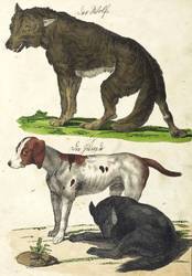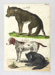 Aus: Naturgeschichte der Säugethiere in Bildern. treu theils nach d. Natur, theils nach d. ausgezeichn. zoolog. Bildersammlungen gez., fein u. getreu color. zum Anschauungsunterricht für d. Jugend [...] (Eßlingen & Stuttgart: Schreiber & Schill 1854). – Jeweils oberhalb in brauner Tusche betitelt. – Papier leicht fleckig und angeschmutzt. Stark beschnitten. Noch guter Zustand.