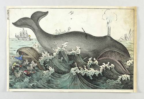 Aus: Naturgeschichte der Säugethiere in Bildern. treu theils nach d. Natur, theils nach d. ausgezeichn. zoolog. Bildersammlungen gez., fein u. getreu color. zum Anschauungsunterricht für d. Jugend [...] (Eßlingen & Stuttgart: Schreiber & Schill 1854). – Papier leicht fleckig, angeschmutzt und teils gebräunt. Stark beschnitten. Mäßig guter Zustand.