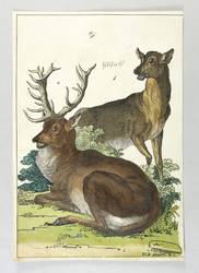 Aus: Naturgeschichte der Säugethiere in Bildern. treu theils nach d. Natur, theils nach d. ausgezeichn. zoolog. Bildersammlungen gez., fein u. getreu color. zum Anschauungsunterricht für d. Jugend [...] (Eßlingen & Stuttgart: Schreiber & Schill 1854). – Oberhalb der Darstellung mit schwarzer Tusche bezeichnet. – Papier leicht fleckig und teils gebräunt. Stark beschnitten. Noch guter Zustand.