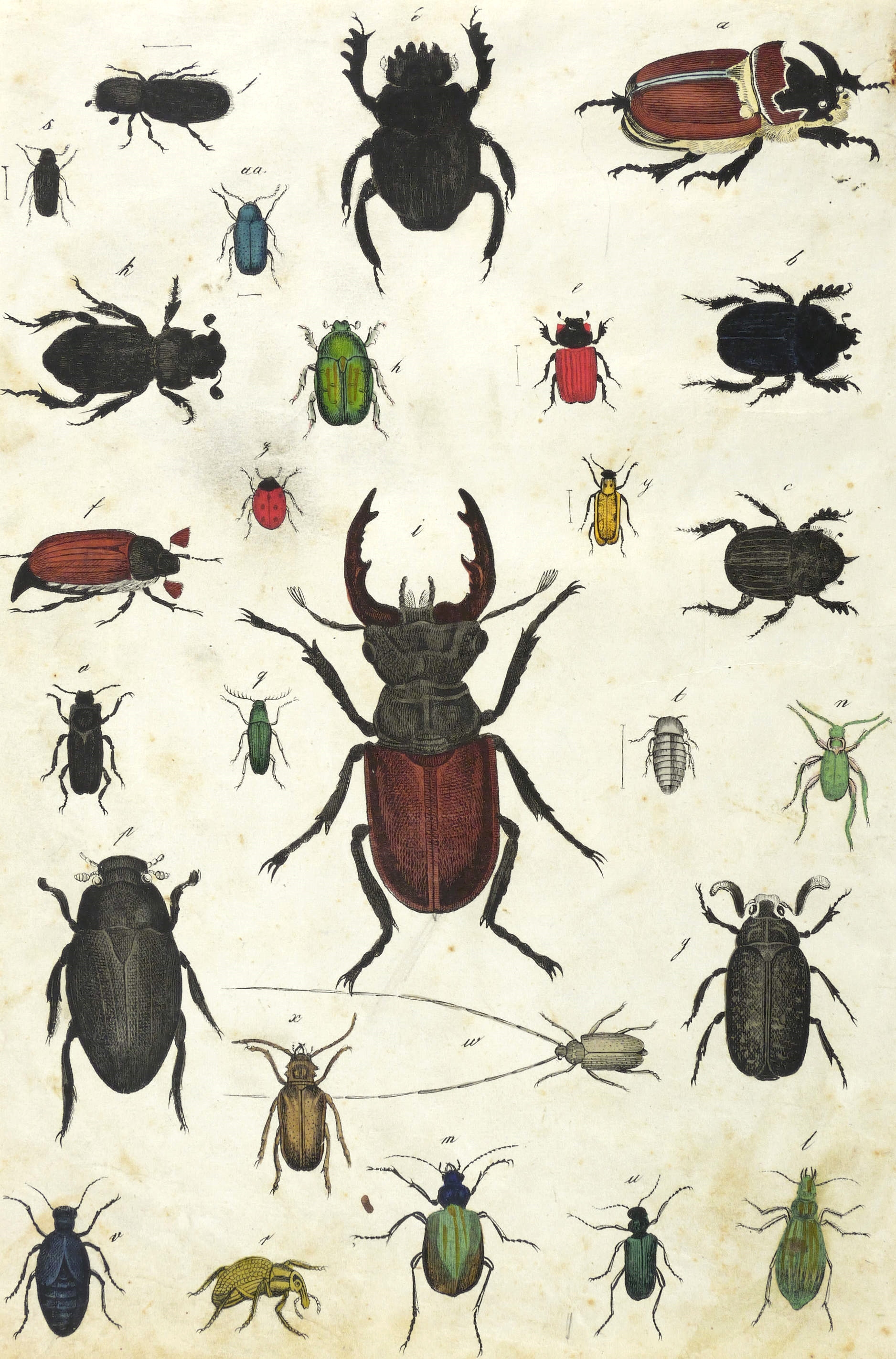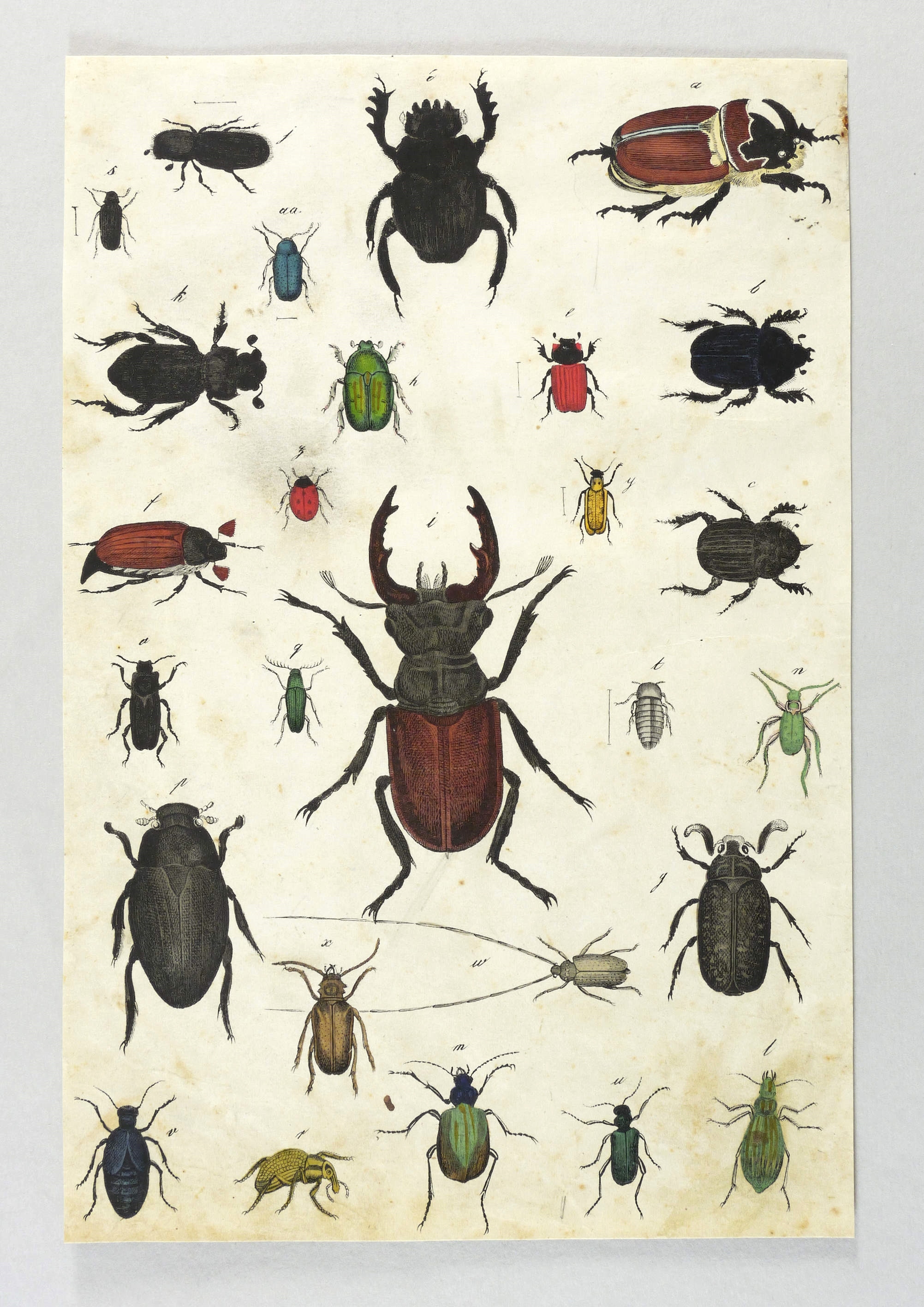 Aus: Gotthilf Heinrich von Schubert, Naturgeschichte der Amphibien, Fische, Weich- und Schaalenthiere, Insekten, Würmer und Strahlenthiere in Bildern. treu theils nach der Natur [...] (Eßlingen: Verlag J.F. Schreiber 1842). – Papier leicht fleckig und teils gebräunt. Stark beschnitten. Noch guter Zustand.