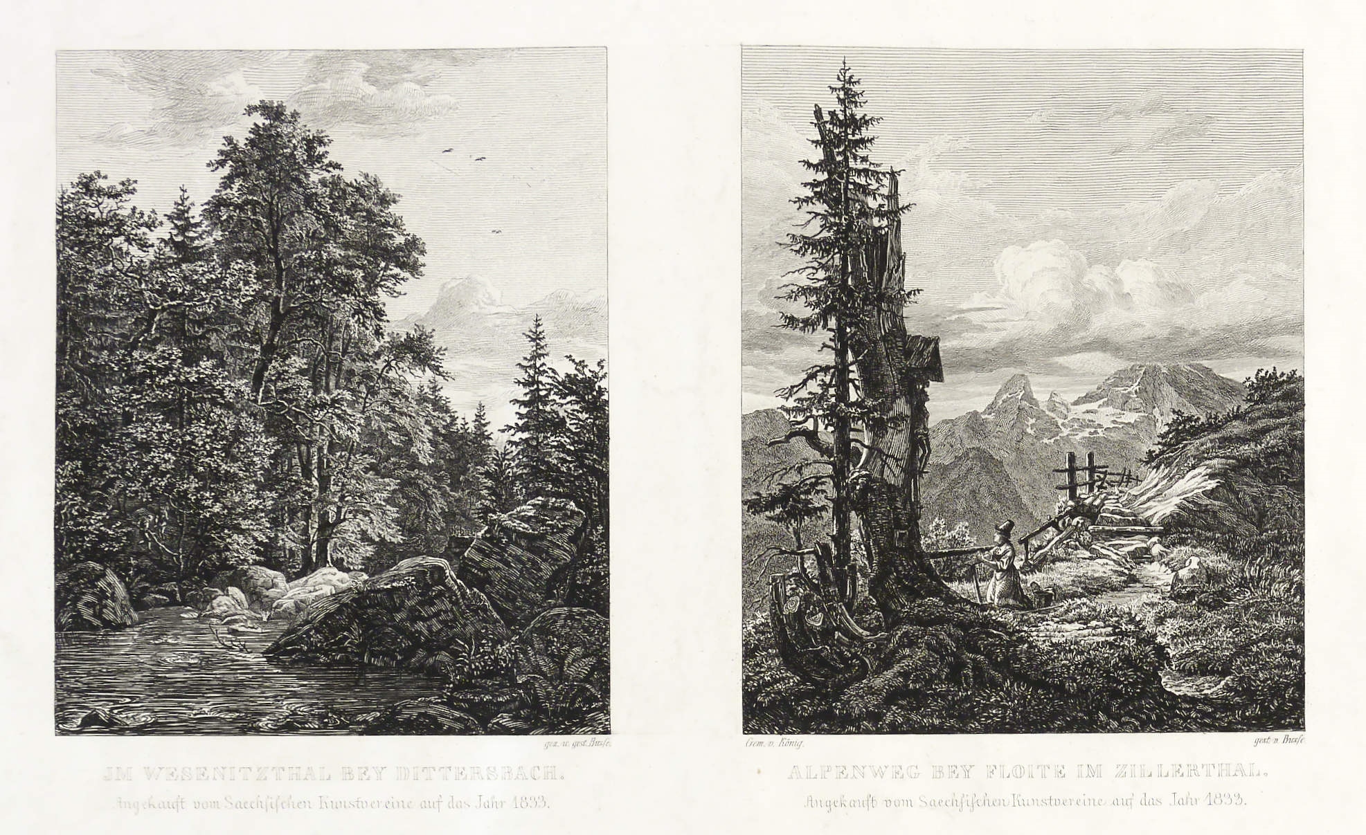 Busse, Georg Heinrich. – Landschaften. – nach Busse und König. – „Im Wesenitzthal bei Dittersbach. Alpenweg bey Floite im Zillerthal”.