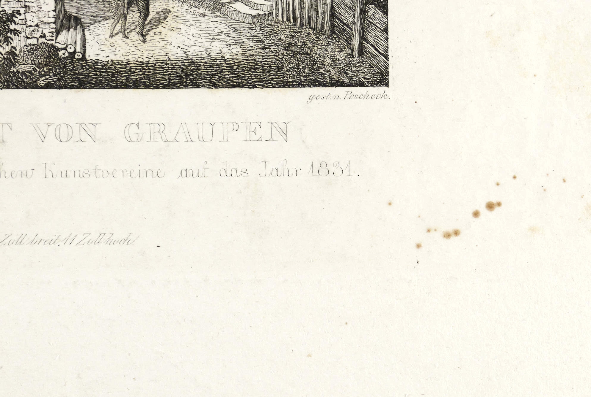1831. Radierung / Strichätzung. – Originale Künstlergrafik, von Carl Pescheck. – 52 x 34 cm (Blatt), 9,1 x 12,9 cm (Darstellung / erste), 9,1 x 12,9 cm (Darstellung / zweite), 27,0 x 22,0 cm (Platte).
