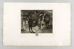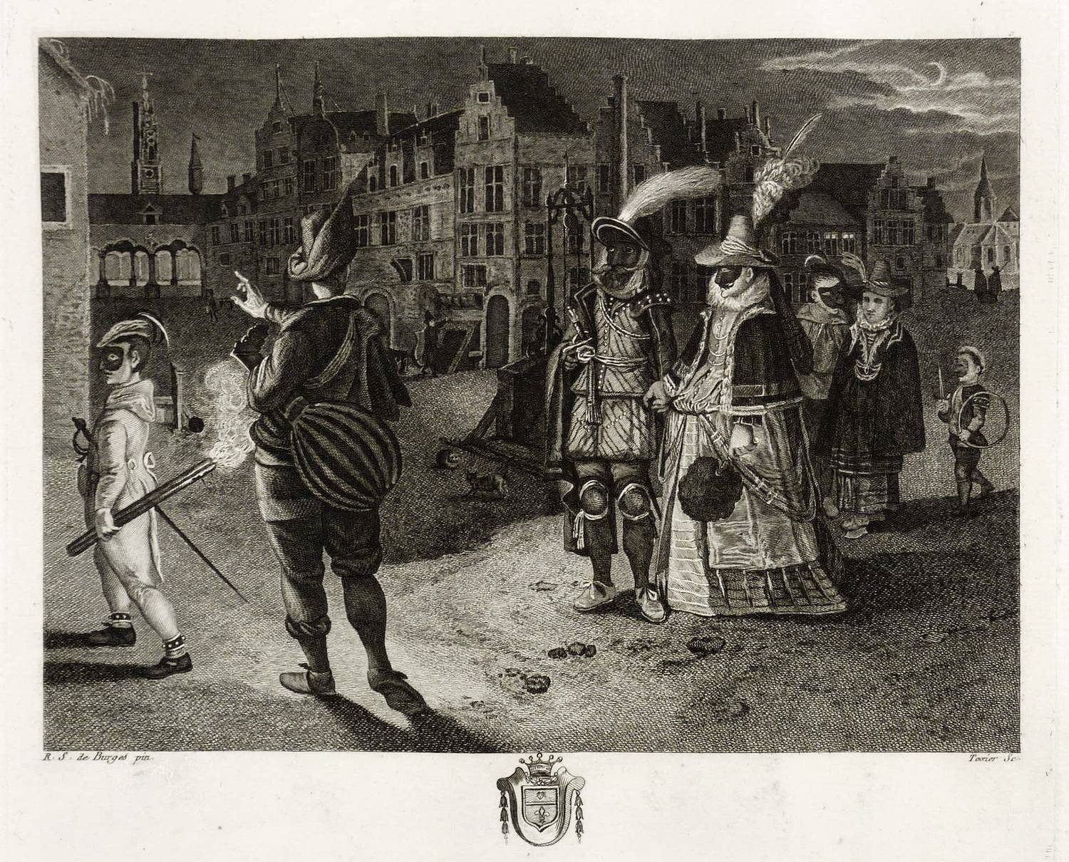 Aus: Jean-Baptiste-Pierre Lebrun, Galerie des peintres flamands, hollandais et allemand (Paris: Jacques-François Chéreau 1792-1796). – Rechts unten signiert: ″Texier Sc.″ – Früher Abzug vor der Schrift: ″Tiré du Cabinet de Mr. le Brun. D'après le Tableau Original Peint sur bois par Vender Heyden...″ – Originalrandiges Blatt. Guter Zustand.