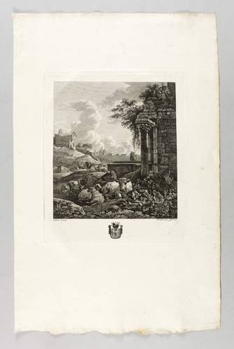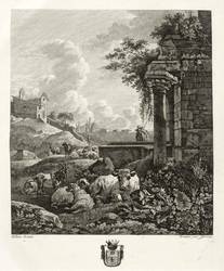 Garreau, Louis. – Nach Willem Romeyn. – „Landschaft mit Viehherde und Ruine”.