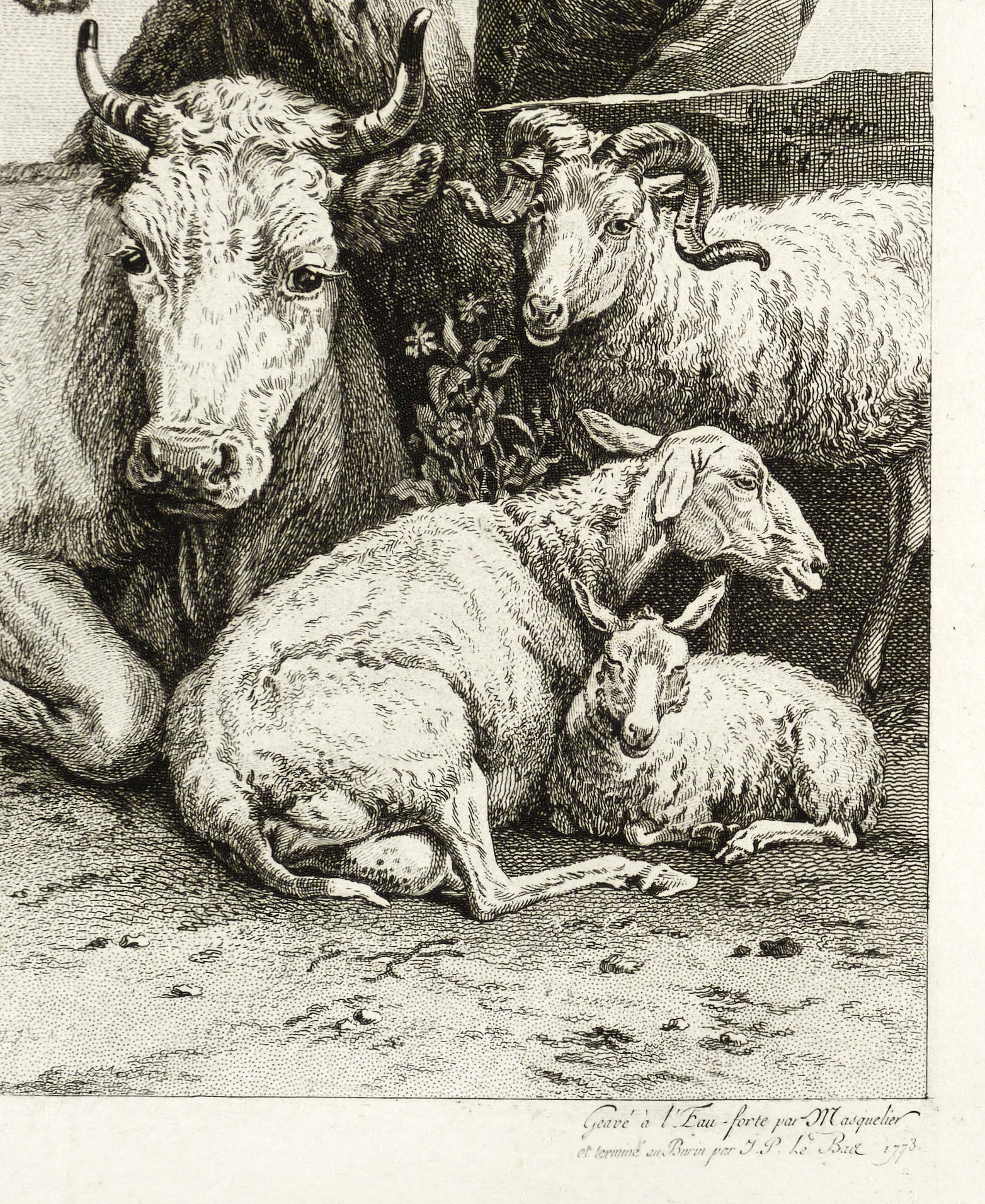 1773. Radierung / Strichätzung. – Originale Künstlergrafik, von Jacques Philippe Le Bas & Louis-Joseph Masquelier. – 18,3 x 28,6 cm (Darstellung), 22,1 x 30,7 cm (Platte), 28,5 x 43,5 cm (Blatt).