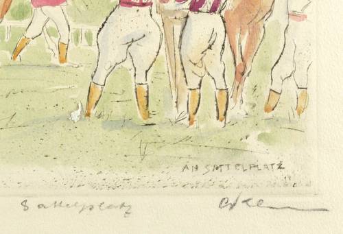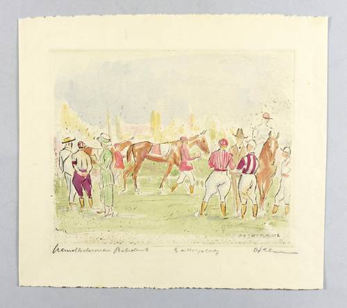Unten rechts in Bleistift signiert, in der Mitte betitelt und links bezeichnet ″handkolorierter Probedruck″. Zudem in der Platte signiert und betitelt. – Guter Zustand.