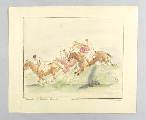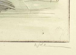 Unten rechts in Bleistift signiert, in der Mitte betitelt und links bezeichnet ″handkolorierter Probedruck″. – Blatt vereinzelt schwach fleckig. Hinterlegter Schnitt neben dem linken Plattenrand. Kaum wahrnehmbare Fehlstelle innerhalb der Darstellung in der rechten unteren Ecke. Insgesamt eher mangelhafter bis mäßig guter Zustand.