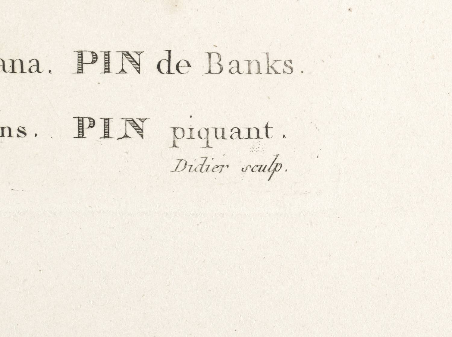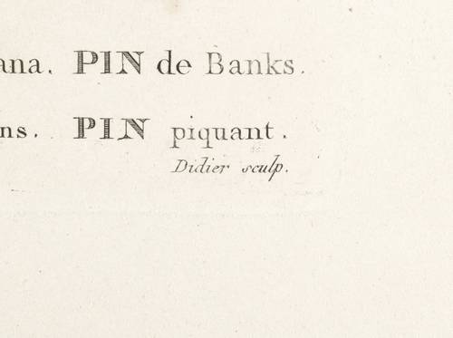 Aus: Henri Louis Duhamel de Monceau, Traité des Arbres et Arbustes que l'on cultivé en France en pleine terre (Paris: Michel 1801-1819). – Rechts unten signiert: ″Didier sculp.″ Unterhalb der Darstellung bezeichnet. – Guter Zustand.