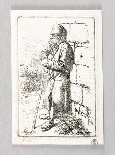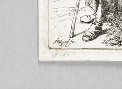 Apell 181 I (von IV). – In der Platte links unten signiert und datiert: ″JCErhard fec 1817″. Darunter von Sammlerhand in Bleistift bezeichnet: ″A[pell]. 181″. Verso weitere Sammlernotizen. In der rechten unteren Blattecke angeschnittener Besitzstempel des sächsischen Königs Friedrich August II. in Schwarz (Lugt 972). – Hervorragender Abzug vom ersten Zustand der Patte mit der noch weißen rechten Schuhspitze und dem unvollendeten Pfeifenkopf, vor der Verlagsadresse von Ferdinand Kettner in Wien. – Außerordentlich seltenes Blatt. – Provenienz: Sammlung Friedrich Julius Arndt (genannt Fritz Arndt, 1856-1919, Besitzer des Klosterguts Oberwartha bei Dresden), danach Sammlung Dr. Theodor Arndt, Dresden-Blasewitz. – Tadellos. Sehr guter Zustand.