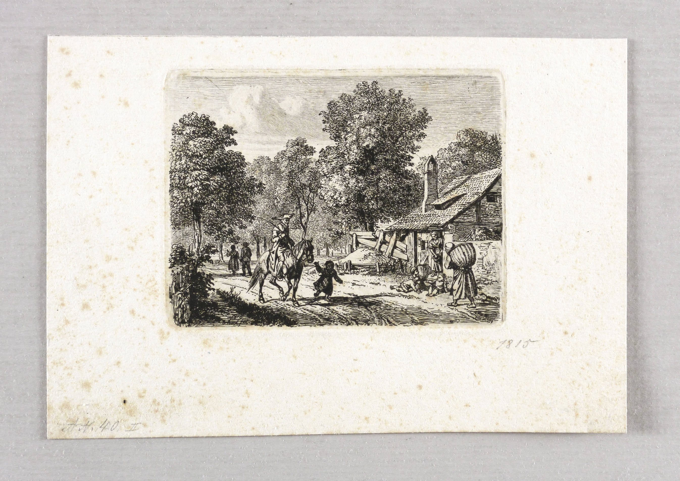 Apell 40 II (von II). – In der Platte links unten signiert: ″C Erhard fec.″. Direkt darüber datiert: ″1816″. – Abzug vom zweiten Zustand der Platte mit allen Vollendungen. – Provenienz: Sammlung Friedrich Julius Arndt (genannt Fritz Arndt, 1856-1919, Besitzer des Klosterguts Oberwartha bei Dresden), ab 1919 Sammlung Dr. Theodor Arndt, Dresden- Blasewitz. – Papier durchgehend etwas stockfleckig. Mäßig guter Zustand.