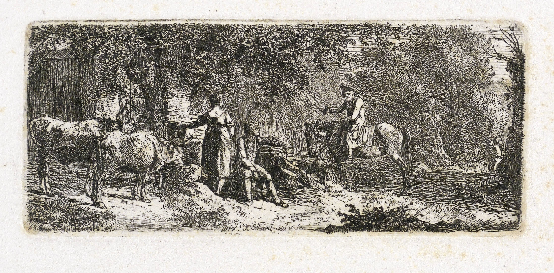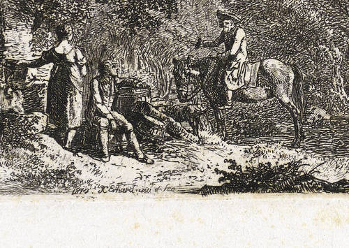 1814. Radierung / Strichätzung & Kaltnadel, in Schwarz, auf gelblichem Velin. – Originale Künstlergrafik, von Johann Christoph Erhard. – 4,4 x 10,0 cm (Darstellung / Platte), 10,5 x 16,0 cm (Blatt).