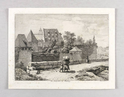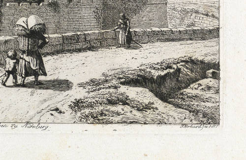 Apell 4 III (von III). – In der Platte rechts unten signiert und datiert: ″JCErhard fec. 1817″. Mittig Titel: ″Am Stadtgraben zu Nürnberg″. – Abzug vom dritten Zustand der Platte mit der Vollendung aller Gegebenheiten. – Provenienz: Sammlung Friedrich Julius Arndt (genannt Fritz Arndt, 1856-1919, Besitzer des Klosterguts Oberwartha bei Dresden), danach Sammlung Dr. Theodor Arndt, Dresden- Blasewitz. – Minimal stockfleckig. Immer noch sehr guter Zustand.
