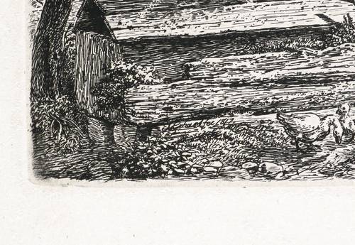 Apell 61 V (von VI). – In der Platte unten links neben den Gänsen signiert und datiert: ″JC. Erhard fec 1817.″ Im rechten unteren Rand Adresse und Blattnummer: ″Wien bei Ferd. Kettner No. 5″. – Weitgeend gratiger Abzug vom fünften Zustand der Platte nach Vollendung aller Gegebenheiten der Darstellung und mit der Adresse von Ferdinand Kettner in Wien. – Provenienz: Sammlung Friedrich Julius Arndt (genannt Fritz Arndt, 1856-1919, Besitzer des Klosterguts Oberwartha bei Dresden), danach Sammlung Dr. Theodor Arndt, Dresden- Blasewitz. – Unscheinbare Altersspuren. Rückseitig leichte Montagespuren. Insgesamt sehr guter Zustand.