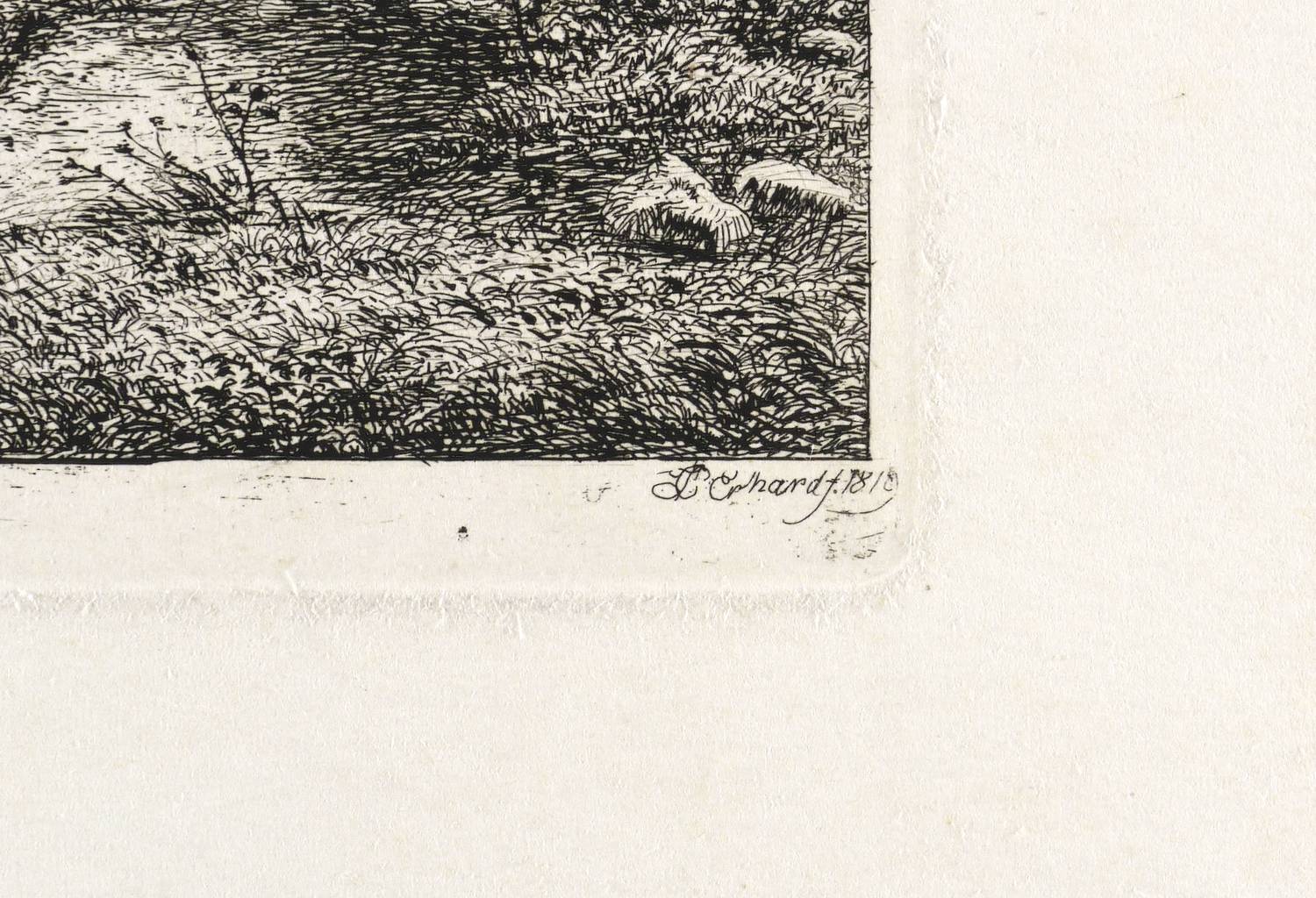 1819. Radierung / Strichätzung & Kaltnadel, auf glattem hellchamois Velin. – Originale Künstlergrafik, von Johann Christoph Erhard. – 11,9 x 17,3 cm (Darstellung / Einfassungslinie), 22,3 x 25,5 cm (Blatt), 12,9 x 17,9 cm (Platte).