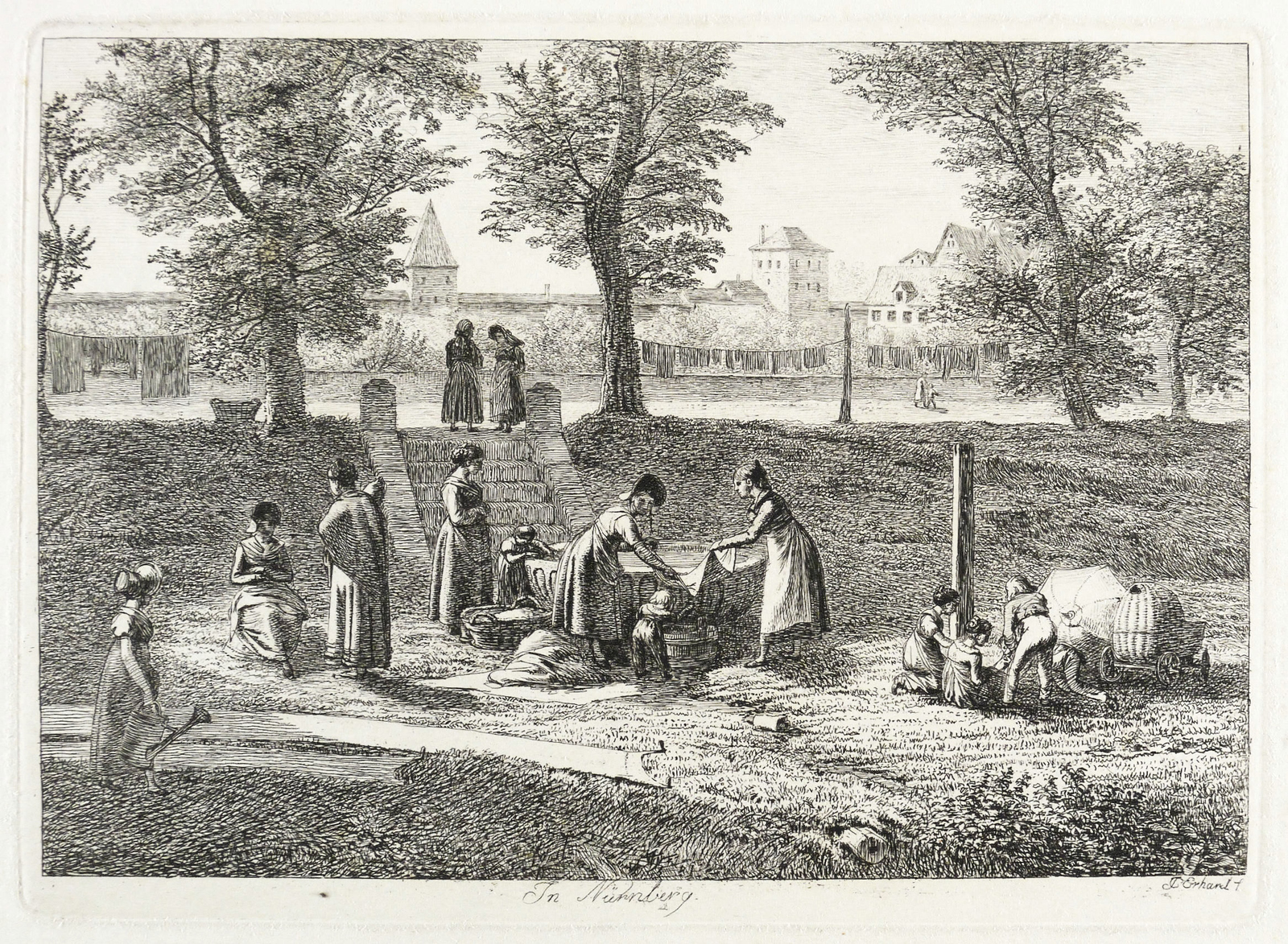 Erhard, Johann Christoph. – Süddeutsche Ansichten. – „In Nürnberg (Wäscherinnen auf der Insel Schütt)”.