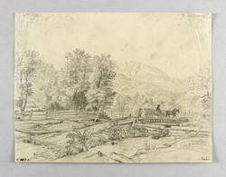 Rechts unten in schwarzer Feder signiert: ″Erhard.″ Rechts oben in Bleistift eigenhändig bezeichnet: ″Im Klosterthal″. In der linken unteren Blattecke in schwarzer Feder Sammlungs- oder Werknummer: ″No 102, a.″ – Im Sommer 1817 entstand diese Vorzeichnung zur gleichnamigen Radierung aus der Folge ″Sechs Ansichten aus den Umgebungen des Schneeberges bei Wiener-Neustadt″ (WVZ Apell 15) auf einer Wanderung mit den Künstlerfreunden Ernst Welker, Friedrich Philipp Reinhold und Heinrich Reinhold. – Provenienz: Sammlung Friedrich Julius Arndt (genannt Fritz Arndt, 1856-1919, Besitzer des Klosterguts Oberwartha bei Dresden), danach Sammlung Dr. Theodor Arndt in Dresden-Blasewitz. – Blatt verso mit leichten Montageresten. Minimal fingerspurig. Insgesamt guter Zustand.