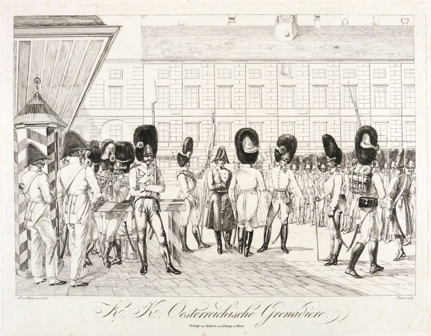 Erhard, Johann Christoph. – Österreichisches Militär. – „K.K. Oesterreichische Grenadiere (Wachablösung in der Wiener Hofburg)”.