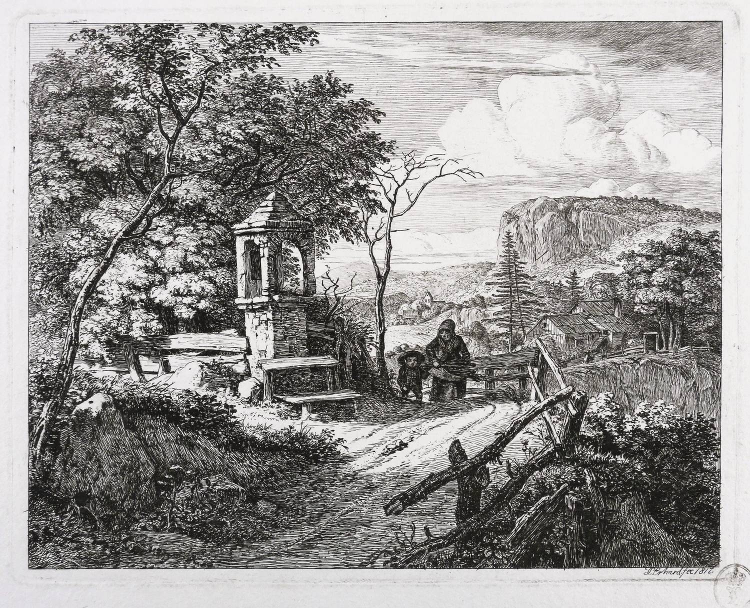 1817. Radierung / Strichätzung & Kaltnadel, in Schwarz, auf hellgelbem Velin. – Originale Künstlergrafik, von Johann Christoph Erhard. – 16,0 x 20,2 cm (Darstellung / Einfassungslinie), 19,4 x 24,1 cm (Blatt), 17,0 x 21,2 cm (Platte).