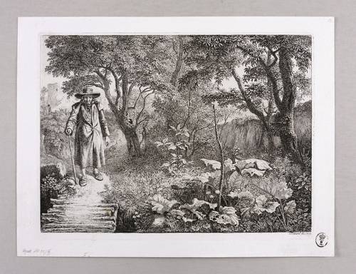 Erhard, Johann Christoph. – Die Salzburger Landschaften mit den großen Figuren. – „Der Alte vor dem Knüppelsteg”.