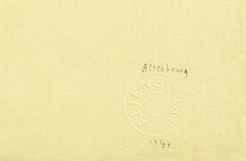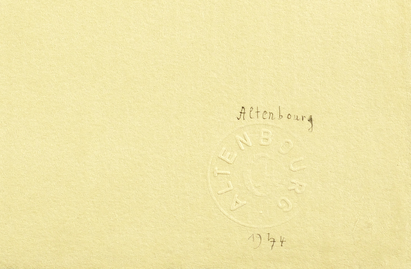 Gerhard Altenbourg (1926 Rödichen-Schnepfetal - 1989 Meißen). Deutscher Maler und Grafiker. 1929 Umzug nach Altenburg. 1944-45 Soldat im Zweiten Weltkrieg. 1946-48 als Schriftsteller und Journalist tätig, Zeichenunterricht bei Erich Dietz. 1948-50 Studium an der Hochschule für Baukunst und Bildende Kunst in Weimar bei Hans Hoffmann-Lederer. 1959 Teilnahme an der documenta II in Kassel. 1961 Gastatelier an der Kunstakademie in Westberlin. 1961 Erwerb einiger Arbeiten durch das Museum of Modern Art in New York. 1962-89 Atelier in Altenburg, Annahme des Künstlernamens "Altenbourg". 1966 Burda-Preis für Grafik in München. 1968 Will-Grohmann-Preis in Westberlin. 1970 Mitglied der Akademie der Künste, Berlin. 1977 Teilnahme an der documenta 6 und Mitgliedschaft bei der „Life Fellow of the International Biographical Association“ in Cambridge. In den 1980er Jahren Ausstellungsverbot und Schließung der Ausstellungen, da er sich den offiziellen Kunstauffassungen der DDR widersetzte. Seit 1998 vergibt das Lindenau-Museum in Altenburg aller zwei Jahre den Gerhard-Altenbourg-Preis.