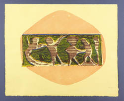 1974. Farbholzschnitt, in Violett-Schwarz, Blau, Gelb & Rot, auf Fabriano-Bütten. – Originale Künstlergrafik, von Gerhard Altenbourg. – Auflage Exemplar Nr. 22/35. – 32,7 x 37,0 cm (Darstellung / Druckbild), 40 x 49 cm (Blatt).