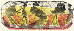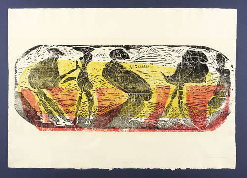 1970. Farbholzschnitt, in Schwarz, Gelb & Rot, auf leichtem hellchamois Bütten. – Originale Künstlergrafik, von Gerhard Altenbourg. – Auflage Exemplar Nr. 6/50. – 22,3 x 56,5 cm (Darstellung / Druckbild), 42 x 59 cm (Blatt).