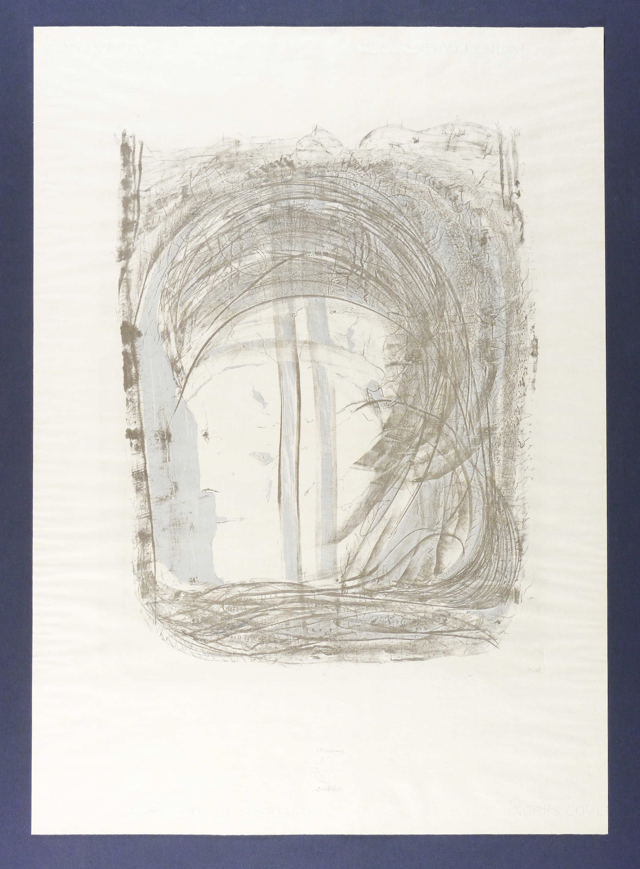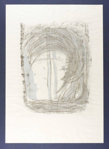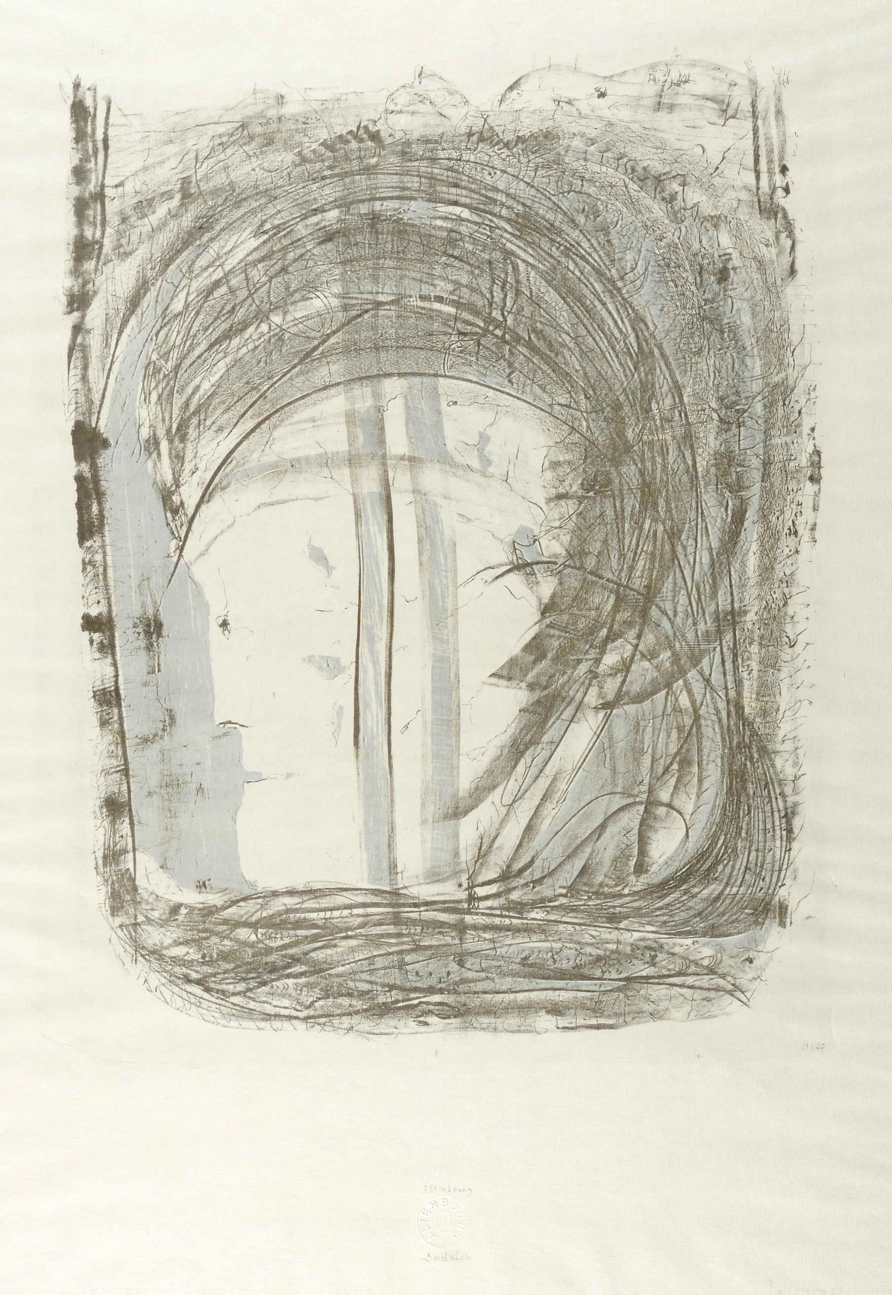 1974. Farblithografie / Kreide- & Pinsellithografie, in Hellblau & Schwarz, auf hellem Ingres-Bütten. – Originale Künstlergrafik, von Gerhard Altenbourg. – Druckerexemplar Nr. 19/20. – 44,5 x 34,5 cm (Darstellung / Druckbild), 66 x 47 cm (Blatt).