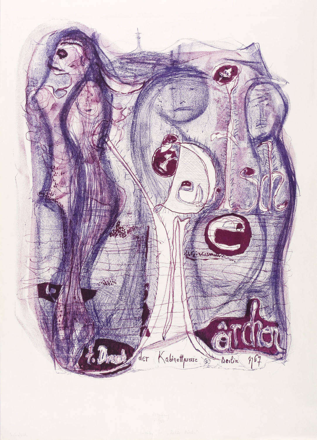 1967. Farblithografie / Kreide- & Pinsellithografie, in Violett & Rot, von 2 Steinen, auf leichtem Velin. – Originale Künstlergrafik, von Gerhard Altenbourg. – Probedruck 4 Exemplare. – 47,7 x 38,0 cm (Darstellung / Druckbild), 62 x 43 cm (Blatt).