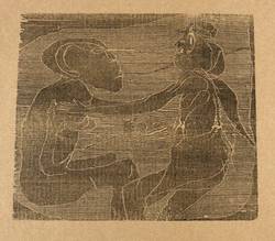 1977. Holzschnitt, in Schwarz, auf grobfasrigem braunem Hahnemühle. – Originale Künstlergrafik, von Gerhard Altenbourg. – Auflage Exemplar Nr. 12/15. – 23,3 x 27,4 cm (Darstellung / Druckstock), 49 x 63 cm (Blatt).