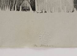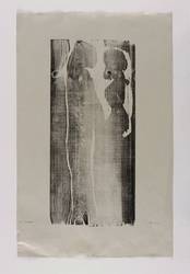 1972. Holzschnitt, in Schwarz, auf hellgrau getöntem Ingres. – Originale Künstlergrafik, von Gerhard Altenbourg. – Probedruck Exemplar. Nr. 3/5. – 36,2 x 16,6 cm (Darstellung / Druckstock), 48 x 31 cm (Blatt).