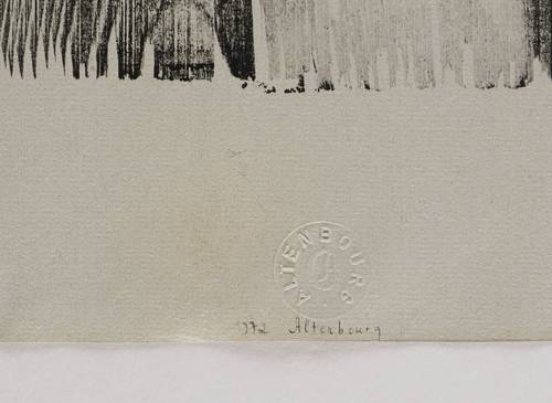 Gerhard Altenbourg (1926 Rödichen-Schnepfetal - 1989 Meißen). Deutscher Maler und Grafiker. 1929 Umzug nach Altenburg. 1944-45 Soldat im Zweiten Weltkrieg. 1946-48 als Schriftsteller und Journalist tätig, Zeichenunterricht bei Erich Dietz. 1948-50 Studium an der Hochschule für Baukunst und Bildende Kunst in Weimar bei Hans Hoffmann-Lederer. 1959 Teilnahme an der documenta II in Kassel. 1961 Gastatelier an der Kunstakademie in Westberlin. 1961 Erwerb einiger Arbeiten durch das Museum of Modern Art in New York. 1962-89 Atelier in Altenburg, Annahme des Künstlernamens "Altenbourg". 1966 Burda-Preis für Grafik in München. 1968 Will-Grohmann-Preis in Westberlin. 1970 Mitglied der Akademie der Künste, Berlin. 1977 Teilnahme an der documenta 6 und Mitgliedschaft bei der „Life Fellow of the International Biographical Association“ in Cambridge. In den 1980er Jahren Ausstellungsverbot und Schließung der Ausstellungen, da er sich den offiziellen Kunstauffassungen der DDR widersetzte. Seit 1998 vergibt das Lindenau-Museum in Altenburg aller zwei Jahre den Gerhard-Altenbourg-Preis.