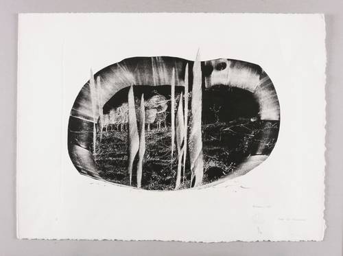 1984. Lithografie / Kreidelithografie, in Schwarz, auf schwerem hellchamois Hahnemühle. – Originale Künstlergrafik, von Gerhard Altenbourg. – Auflage Exemplar Nr. 9/12. – 26,0 x 37,2 cm (Darstellung / Druckbild), 40 x 54 cm (Blatt).