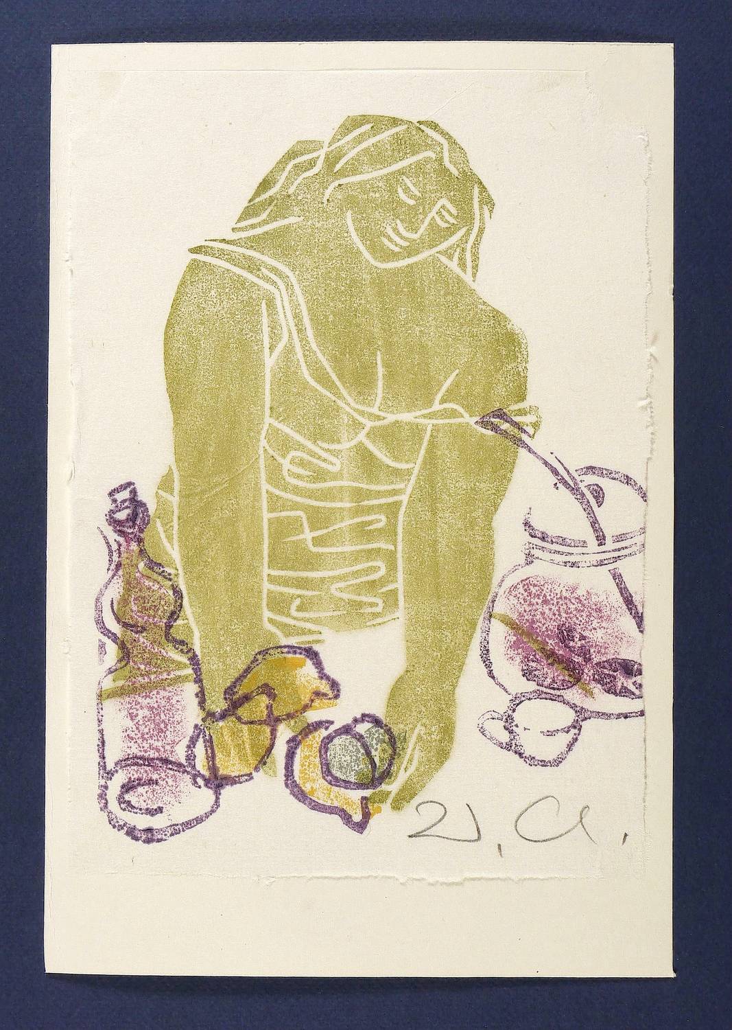 1978. Farbholzschnitt, mit Aquarellfarben, in 5 Farben, auf Japanpapier. – Originale Künstlergrafik, von Walter Arnold. – 21,6 x 16,3 cm (Darstellung / Druckstock), 24 x 17 cm (Blatt), 27,5 x 18,5 cm (Trägerkarton).