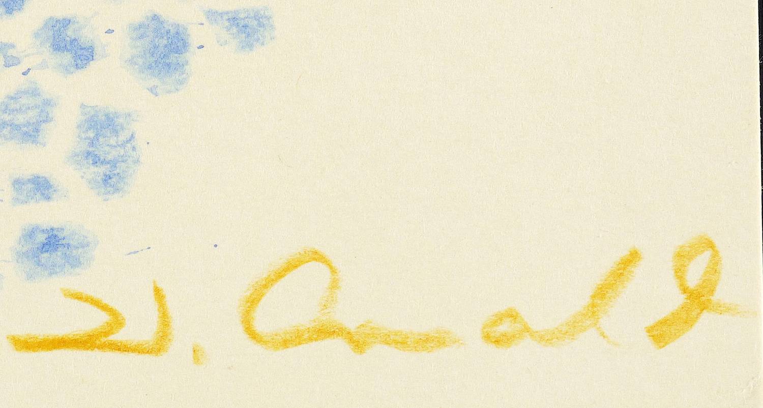 1967. Farbholzschnitt, Aquarellfarbe in 5 Farben, auf Karton. – Originale Künstlergrafik, von Walter Arnold. – 9,5 x 17,0 cm (Darstellung / Blatt).