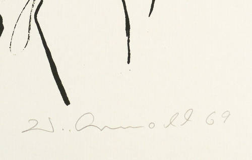 1967/1969. Lithografie / Kreidelithografie, in Schwarz, auf chamois Maschinenbütten. – Originale Künstlergrafik, von Walter Arnold. – 33,5 x 20,0 cm (Darstellung), 51 x 38 cm (Blatt).