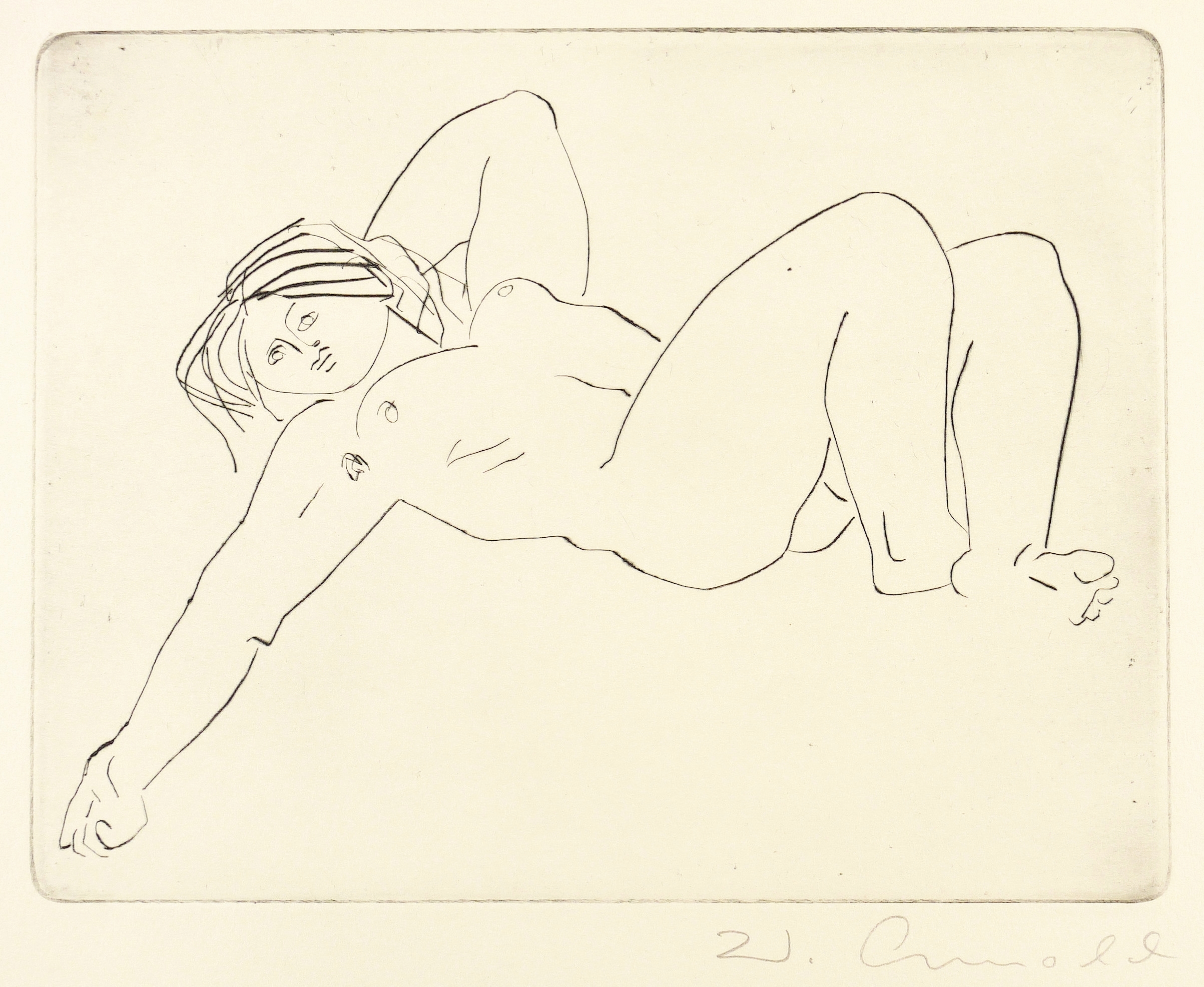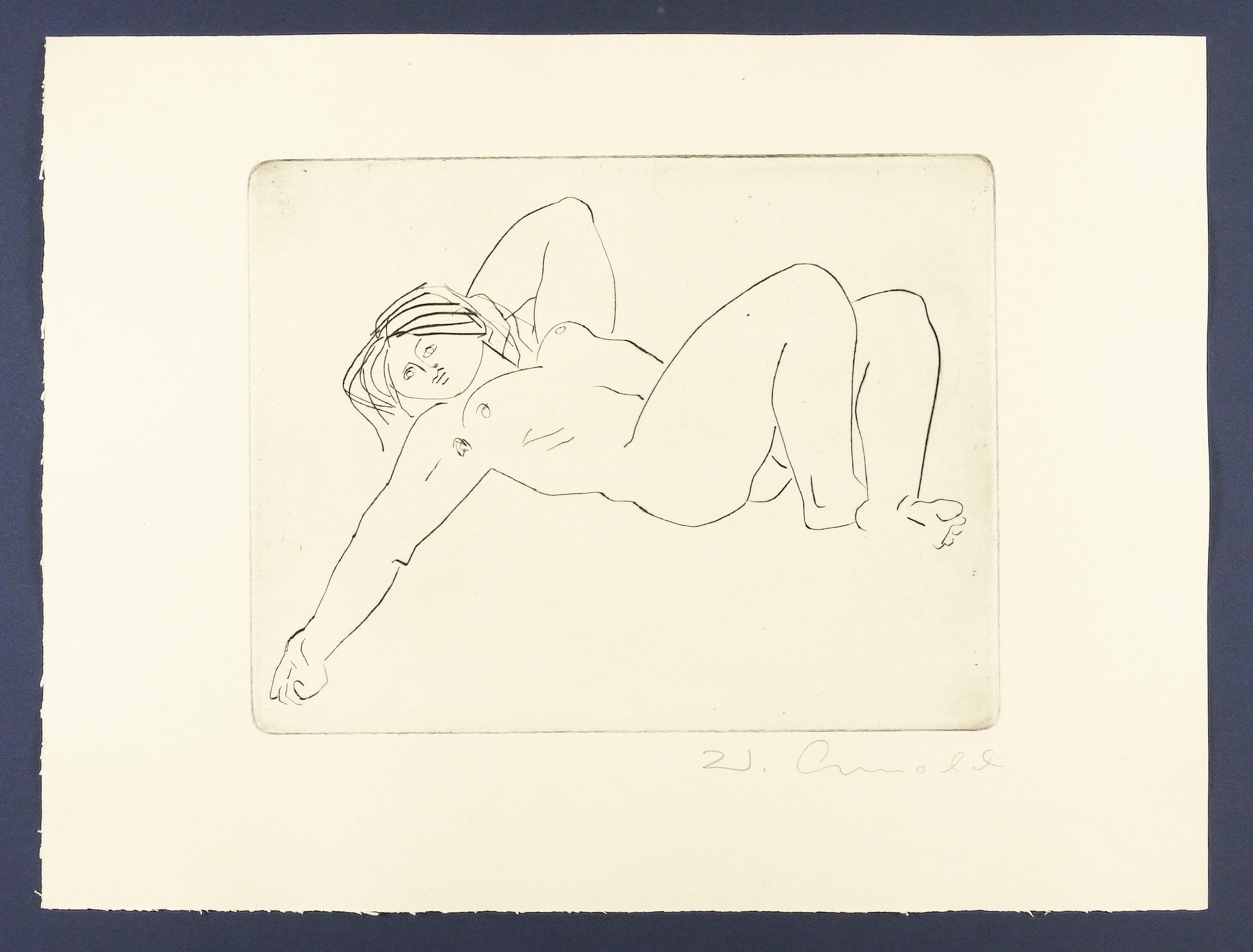 1964. Radierung / Kaltnadel, in Schwarz, auf gelblichem Tiefdruckkarton. – Originale Künstlergrafik, von Walter Arnold. – 24,7 x 32,1 cm (Darstellung / Platte), 38 x 50 cm (Blatt).