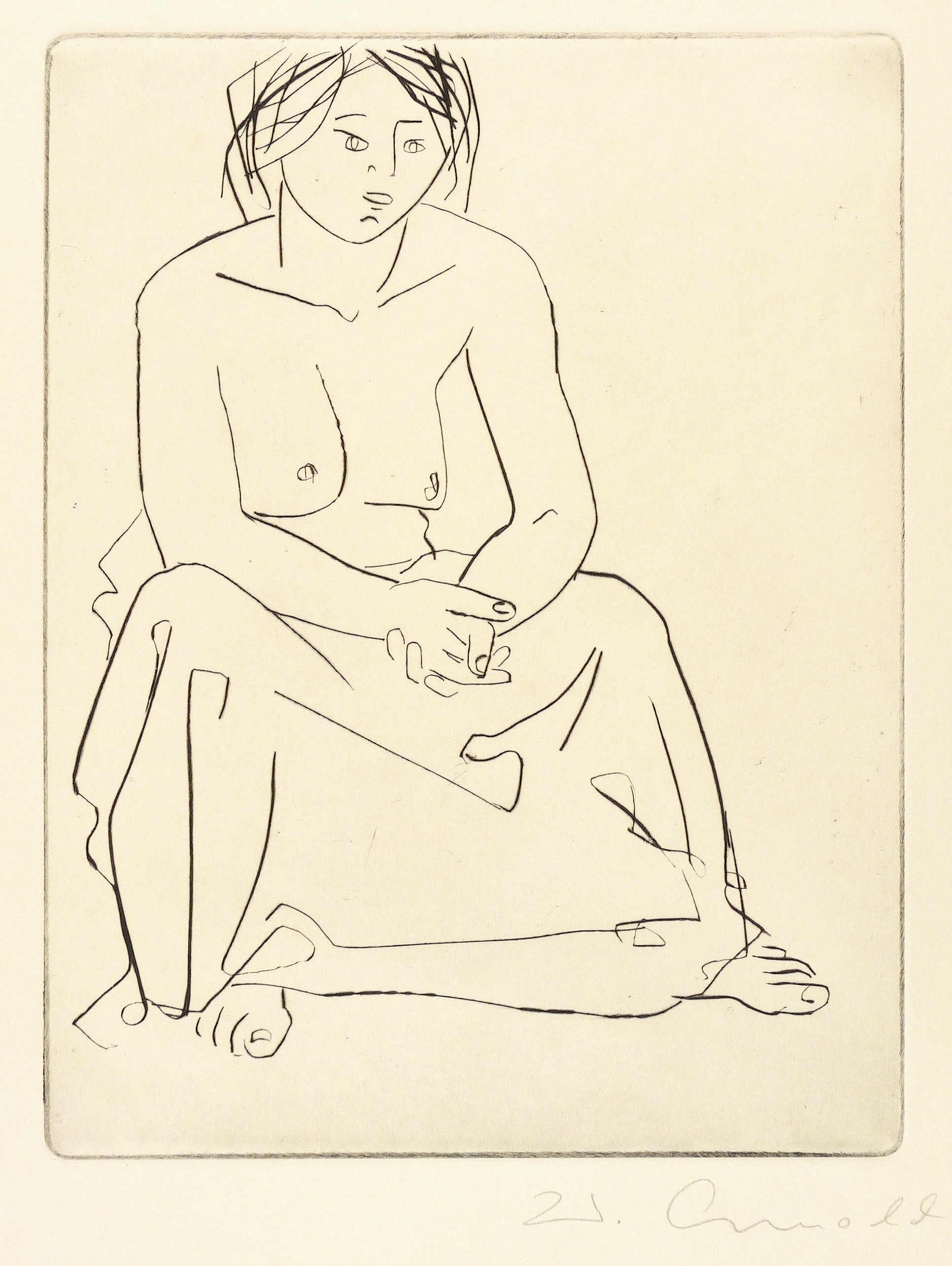 1965. Radierung / Kaltnadel, auf hellem Karton. – Originale Künstlergrafik, von Walter Arnold. – 32,0 x 24,4 cm (Darstellung / Platte), 50 x 38 cm (Blatt).