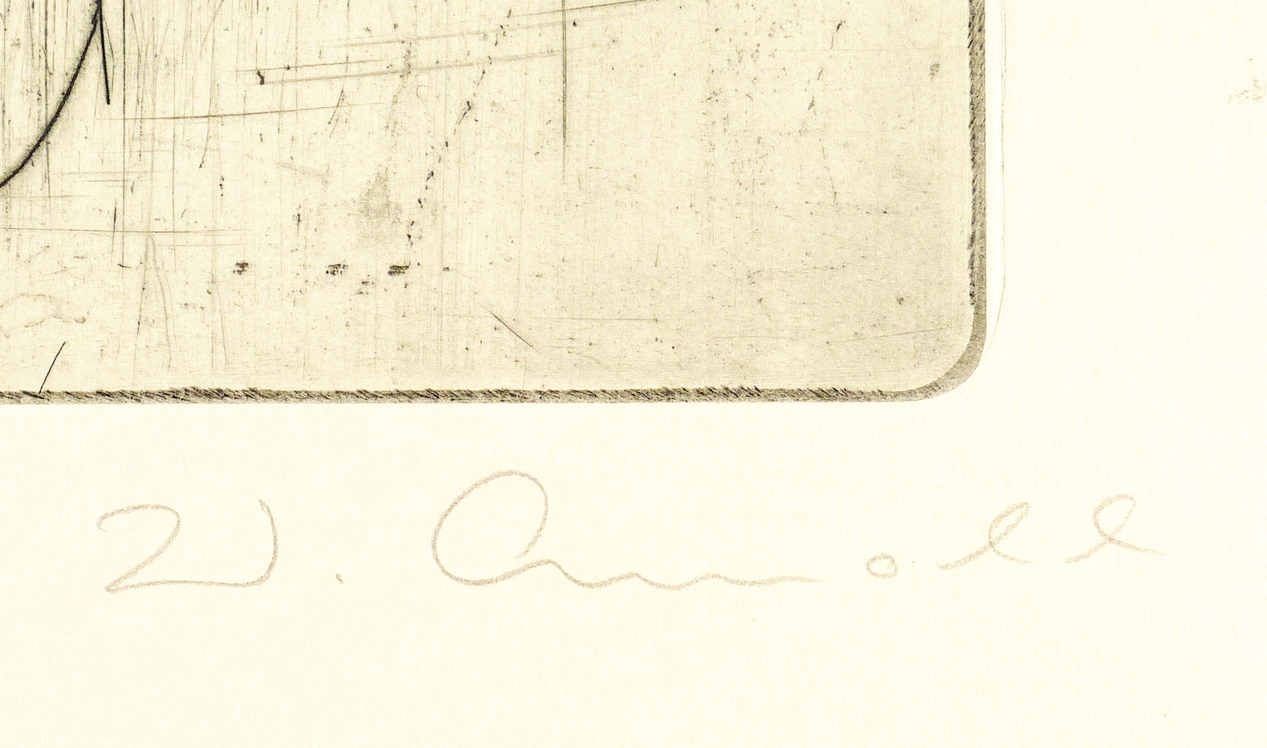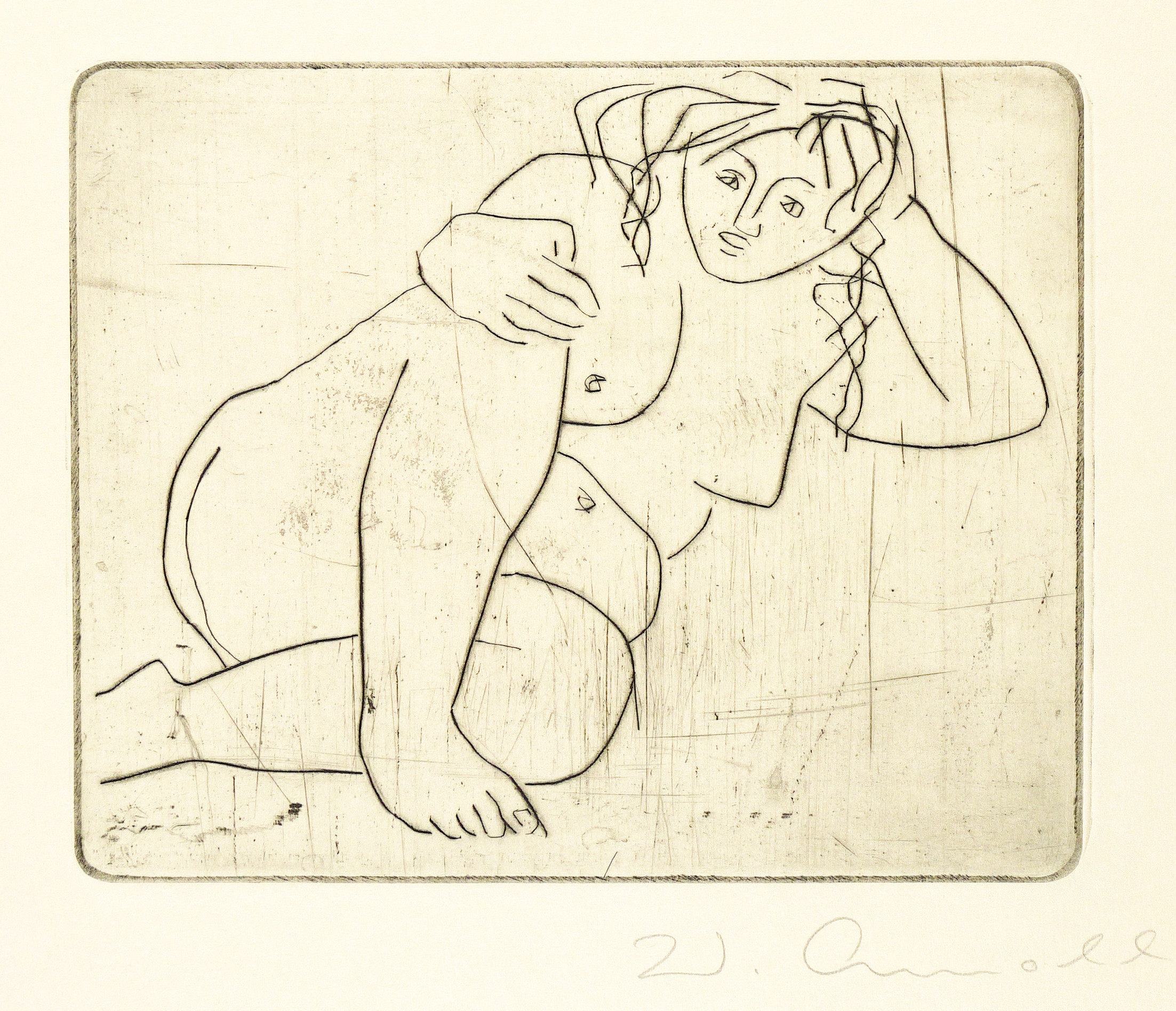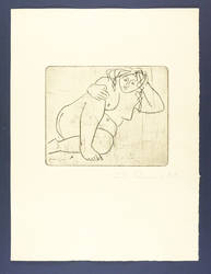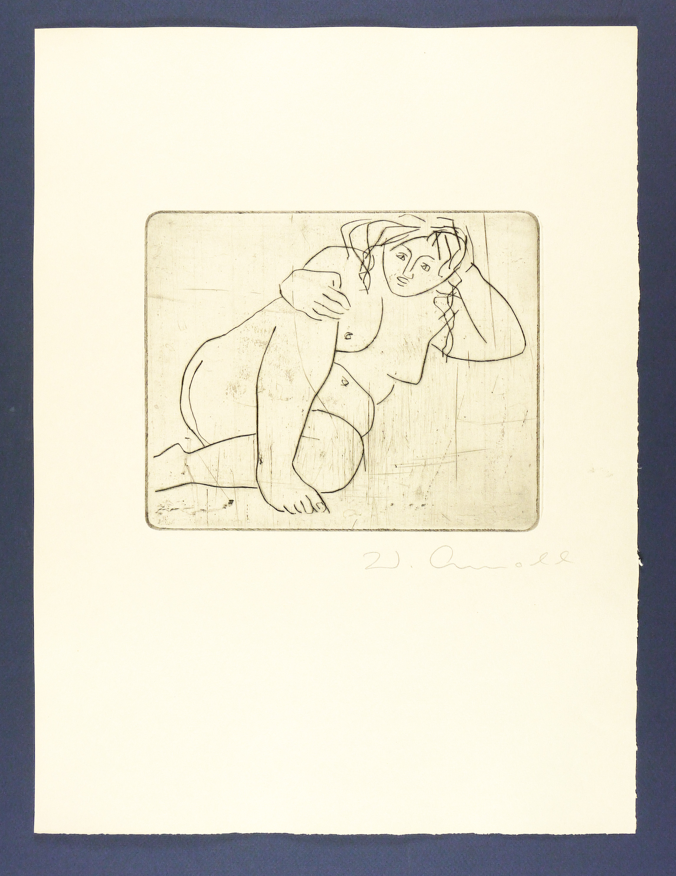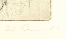 1962. Radierung / Kaltnadel, in Schwarz, auf chamoisfarbenem Büttenkarton. – Originale Künstlergrafik, von Walter Arnold. – 19,8 x 24,7 cm (Darstellung / Platte), 50 x 38 cm (Blatt).