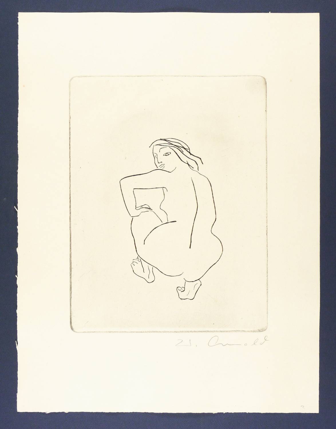 1967. Radierung / Kaltnadel, in Schwarz, auf chamoisfarbenem Tiefdruckkarton. – Originale Künstlergrafik, von Walter Arnold. – 32,0 x 24,7 cm (Darstellung / Platte), 50 x 38 cm (Blatt).