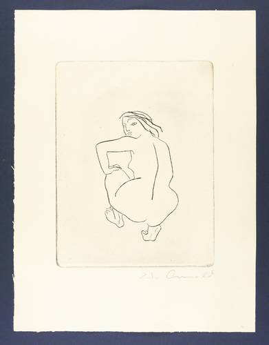 Walter Arnold (1909 Leipzig - 1979 Dresden). Deutscher Bildhauer und Grafiker. 1924-28 Ausbildung als Holz- und Steinbildhauer. 1928-32 Studium bei Alfred Thiele an der Leipziger Kunstgewerbeschule. 1933-40 freischaffend. Soldat und Kriegsgefangener im Zweiten Weltkrieg. 1946-49 Dozent an der Hochschule für Grafik und Buchkunst Leipzig (HGB). 1949 Berufung an die Hochschule für Bildende Künste Dresden (HfBK), bis 1970 dort Professor. 1970-74 Professor an der HGB Leipzig. 1952 Mitglied der Deutschen Akademie der Künste. 1958-64 Nachfolger von Otto Nagel als Vorsitzender des Verbandes Bildender Künstler.