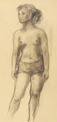 Um 1955. Zeichnung / Bleistiftzeichnung, partiell gewischt, auf hellorangem Zeichenkarton. – Originale Künstlergrafik, von Walter Arnold. – Unikat. – 42,0 x 29,3 cm (Darstellung / Blatt).