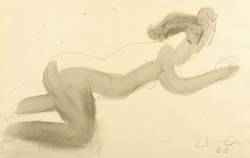 1968. Zeichnung / Bleistiftzeichnung, mit Tusche in Grau laviert, auf gelblichem Velin. – Originale Künstlergrafik, von Walter Arnold. – Unikat. – 29,7 x 41,7 cm (Darstellung / Blatt).
